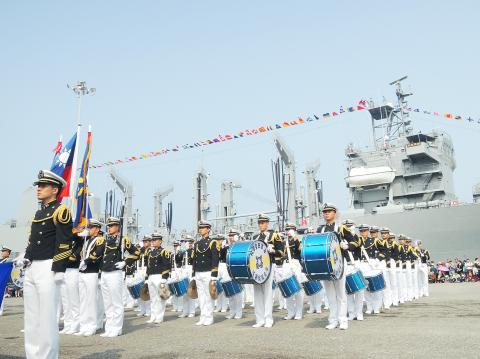 At yesterday’s event, an estimated crowd of 7,000 packed Anping Port, watching the pomp and pageantry on display by the navy’s ceremonial honor guards, along with music and entertainment provided by the Naval Academy’s drum corps and marching bands.
