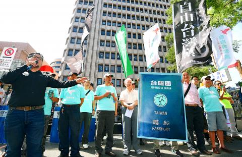 Taiwanese should be allowed to put “Republic of Taiwan” stickers on their passports, pro-independence activists said yesterday at a protest outside the Bureau of Consular Affairs building.