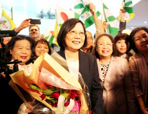 Democratic Progressive Party (DPP) presidential candidate Tsai Ing-wen (蔡英文) yesterday arrived in Tokyo on a visit to meet with friends and Taiwanese expatriates.