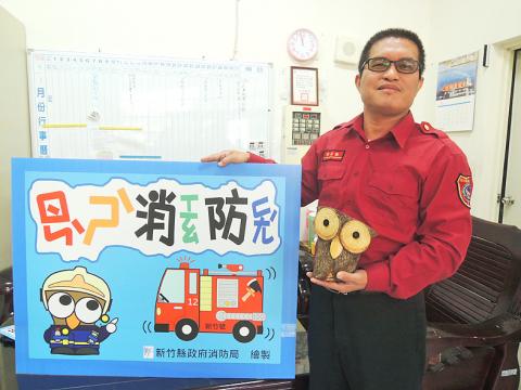 The self-taught artist is a 47-year-old firefighter from the Atayal community of Hsiujuan Village (秀巒) in Hsinchu’s Jianshih Township (尖石), and has been a firefighter since 1991.