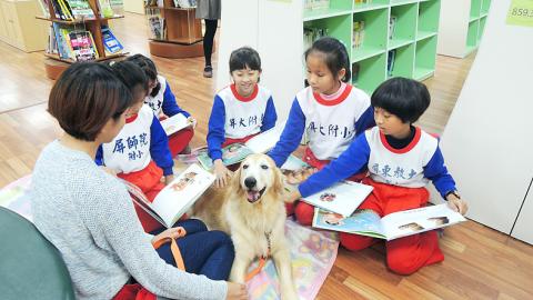 National Pingtung University, in association with the university’s affiliated Experimental Elementary School, has started a program introducing dogs as study aides for young children to improve their concentration.