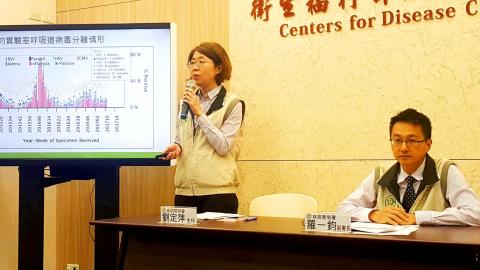 CDC Epidemic Intelligence Center Director Liu Ting-ping (劉定萍) said weekly data indicated a slight growth trend in flu cases, with most infections caused by the influenza A virus subtype H3N2.