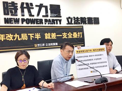 As the first cross-caucus negotiation round drew to a close yesterday, the NPP held a news conference in Taipei to promote its pension reform platform.