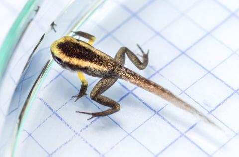 The tadpole is mostly black and will gain its telltale golden yellow color after it reaches maturity, they said.