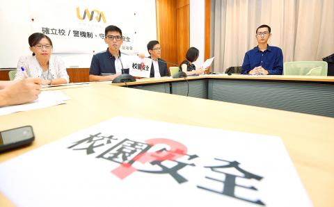 The University Act Reform Alliance called a news conference at the Legislative Yuan, inviting two DPP legislators, a ministry official and student representatives to discuss campus safety issues.