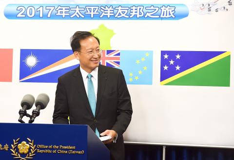 The president is to visit the Marshall Islands, Tuvalu and the Solomon Islands, Deputy Minister of Foreign Affairs Wu Chih-chung (吳志中) said at a Presidential Office news conference.