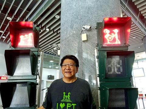Pingtung County’s creative spin on pedestrian crossing lights has taken off as the county government yesterday launched an update to its animated traffic signs, known as the “little green man,” to celebrate Mother’s Day on Sunday.