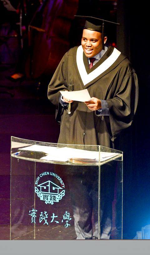 “As I wish everyone a bright future, I also want to tell you that I like Shih Chien and I love Taiwan,” he said, adding that he would pursue a postgraduate degree at the school.