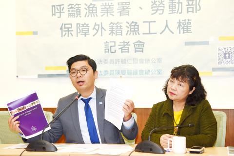 Many migrant fishers live in tiny, unclean spaces with no showers, Chinese Nationalist Party (KMT) Legislator Jason Hsu (許毓仁) and the Yilan Migrant Fishermen Union said yesterday, calling on the Ministry of Labor and the Fisheries Agency to improve their work conditions.