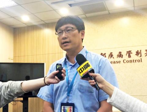 The man had visited a friend in Kaohsiung’s Daliao District (大寮) and a natural recreational area in Fengshan District (鳳山) during the incubation period, CDC physician Lin Yung-ching (林詠青) said, adding that there is a pig farm and meat market as well as rice paddies near the places he visited, so he might have been infected there.