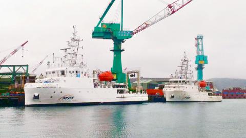 Three new research vessels — the 2,200-tonne New Ocean Researcher I, 800-tonne New Ocean Researcher II and 800-tonne New Ocean Researcher III built by CSBC Corp — are to be delivered by the end of this year, Minister of Science and Technology Chen Liang-gee (陳良基) said.