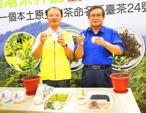 Known as the “Formosan landlocked salmon of Taiwanese tea,” Taiwan Tea No. 24 is the only purely indigenous variety of the Taiwan Tea series, station director Su Tsung-chen (蘇宗振) said.
