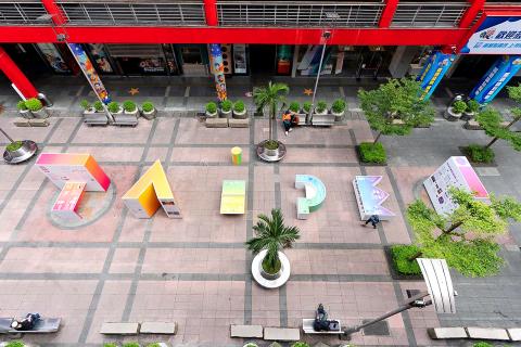 The exhibition, which runs until Nov. 13, is to feature six large installations spelling “Taipei,” each with a unique design, including a table tennis table, a bench, a bookshelf, a rock-climbing wall and a photo background, organizers said.
