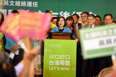 While campaigning for re-election yesterday, President Tsai Ing-wen (蔡英文) said that China has been spreading disinformation in an attempt to sway voters, and called on all pro-Taiwan forces to unite for the elections on Jan. 11.