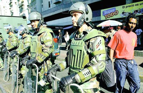 Several thousand National Guard troops backed by armored vehicles along the route kept opposition protesters away from pockets of jeering Chavez sympathizers.