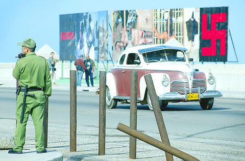 The Cuban authorities have also put up red flags with the Nazi crosses emblazoned on them.