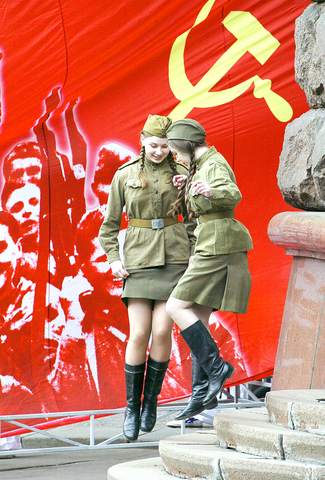 Soviet-era emblems and images of Josef Stalin abounded -- historically correct, but unsettling amid fears that President Vladimir Putin wants to lead the country back into heavy-handed authoritarian rule.