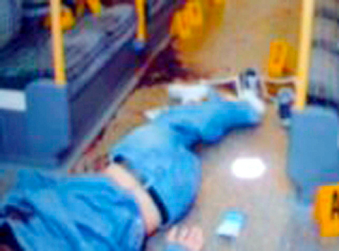 Moments later, police burst in and apparently restrain the Brazilian before pumping seven bullets into his head and one into his shoulder. Three more bullets missed him and the casings were left lying on the floor.