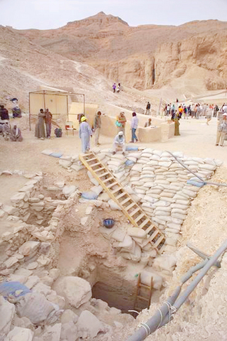 Yesterday, Egyptian antiquities authorities allowed journalists a first look into the tomb through the opening in the door, located at the bottom of a 10m shaft. It is located near the tomb of Tutankhamen -- the last new burial site to be discovered in the valley, in 1922 by British archaeologist Howard Carter.