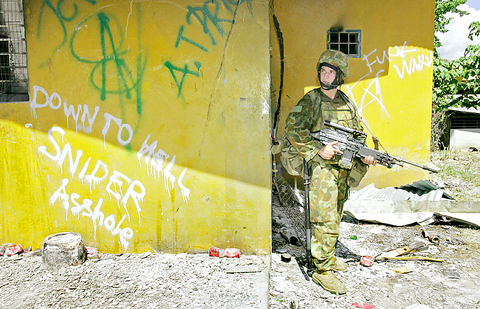 CAUSE UNKNOWN: Weather and runway conditions were suitable for flight operations at the time of the accident, and no distress signal was sent, authorities said A cargo aircraft skidded off the runway into the sea at Hong Kong International Airport early yesterday, killing two ground crew in a patrol car, in one of the worst accidents in the airport’s 27-year history. The incident occurred at about 3:50am, when the plane is suspected to have lost control upon landing, veering off the runway and crashing through a fence, the Airport Authority Hong Kong said. The jet hit a security patrol car on the perimeter road outside the runway zone, which then fell into the water, it said in a statement. The four crew members on the plane, which