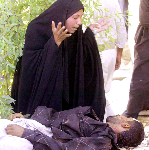 "We want the Mehdi Army to protect us. We want Moqtada's army to protect us," a woman dressed in a black abaya screamed.