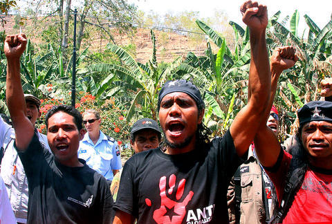 Protesters called yesterday for the disbanding of an Indonesia-East Timor commission looking into violence surrounding East Timor's 1999 independence vote, demanding justice for what happened.