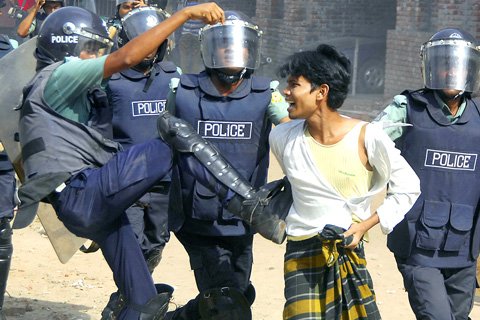 In Dhaka, protesters took shelter in mosques as police followed them with swinging batons.