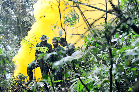 Police have said local residents were the first to see the plane slam into the dense pocket of jungle on the mountain’s slopes. Villagers also reportedly reached the wreckage before it was spotted by an airforce plane on Friday.