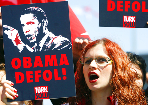 On Sunday, small groups of protesters gathered in Ankara and Istanbul to object to various US policies. In an Istanbul square, members of a leftist group waved Turkish flags and shouted “Obama, go home!”
