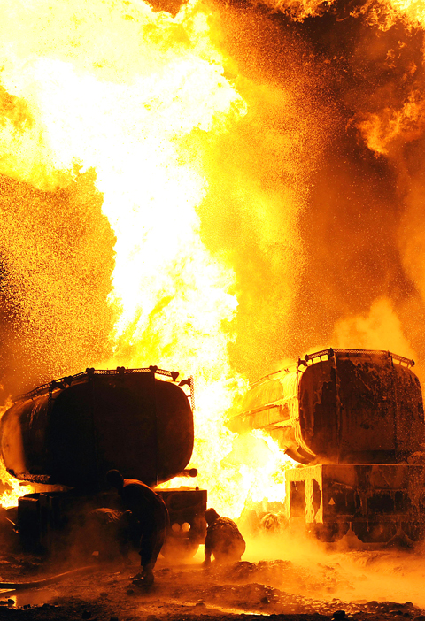 CAUSE UNKNOWN: Weather and runway conditions were suitable for flight operations at the time of the accident, and no distress signal was sent, authorities said A cargo aircraft skidded off the runway into the sea at Hong Kong International Airport early yesterday, killing two ground crew in a patrol car, in one of the worst accidents in the airport’s 27-year history. The incident occurred at about 3:50am, when the plane is suspected to have lost control upon landing, veering off the runway and crashing through a fence, the Airport Authority Hong Kong said. The jet hit a security patrol car on the perimeter road outside the runway zone, which then fell into the water, it said in a statement. The four crew members on the plane, which