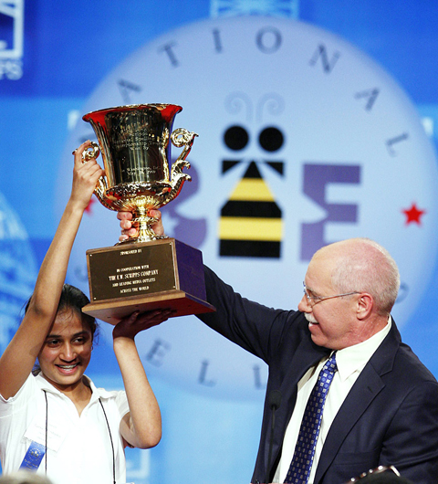 The budding neurosurgeon from Olathe, Kansas, outlasted 11 finalists on Thursday night to win the Scripps National Spelling Bee, taking home more than US$40,000 in cash and prizes and, of course, the huge champion’s trophy.