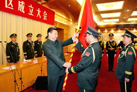 Chinese President Xi Jinping (習近平) formally reorganized the People’s Liberation Army (PLA) under five “battle zones,” securing the last major piece expected in China’s biggest military overhaul in decades.
