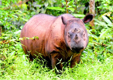 Sumatran rhinos are the smallest of all rhinos and the only Asian variety with two horns.