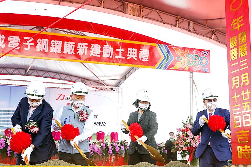 Powerchip Semiconductor Manufacturing Corp (力積電) yesterday held a groundbreaking ceremony for a NT$278 billion (US$9.72 billion) fab in Miaoli County, to raise capacity as it is struggling to keep up with demand for its chips.