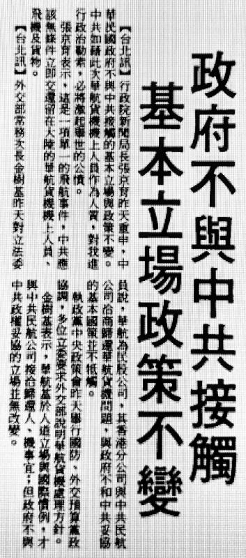 After a few days of no progress, China Airlines offered to send a delegation to meet with its counterpart, CAAC Airlines, in Hong Kong. Although both airlines were state-owned, they technically weren’t government organizations, so an exception could be made out of humanitarian concerns, the United Daily News reported.