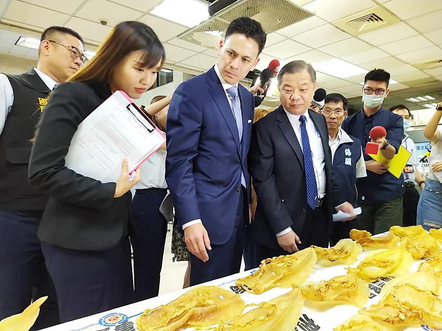 Local police and customs authorities seized 19kg of totoaba swim bladders between July 28 and Aug. 12 that had a black market price of about US$900,000, the CIB told a news conference at its office in Taipei.