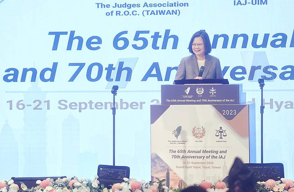 President Tsai Ing-wen (蔡英文) also gave a speech at the IAJ event, saying the government is striving to reach the highest international standards in judicial independence and human rights protection.