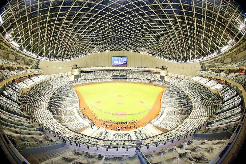 “The dome’s opening today is what fans have been waiting for, and also a time to remember for Taipei,” Chiang said, adding that it has been more than three decades since local baseball fans first heard of a promise by then-premier Hau Pei-tsun (郝柏村) to build an indoor sports dome in Taipei.