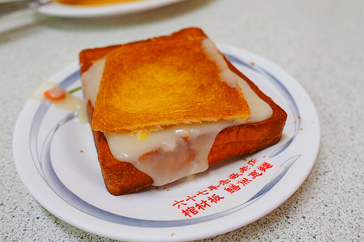 Coffin bread, or treasure chest, was created at a restaurant called Shenchang Old Chikan located in Kangle Market, Tainan. The market is also commonly known as Sakariba in Japanese, which means “a popular spot,” and was thriving when Japan ruled Taiwan in the early 20th century. The dish was invented in the 1940s by the restaurant owner Hsu Liu-yi when organ meat such as chicken livers was considered a nutritious and healthy part of a good diet. This gave the owner Hsu the idea to combine bread originated from the West with the chicken liver that many Taiwanese love into a dish called “chicken liver bread,” and this creation was an instant hit. One day, a professor came to his store to try the specialty. Its unique shape made him associate it with a coffin, and that’s how the bread got its unusual name — coffin bread.