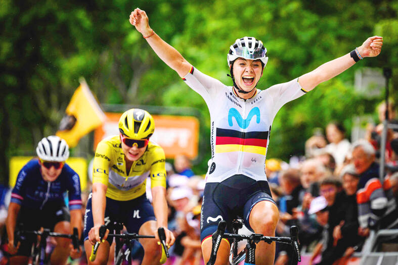 Germany’s Liane Lippert on Monday mastered the slippery conditions and a puncture to sprint to victory in the second stage of the Women’s Tour de France just ahead of Belgian race leader Lotte Kopecky.