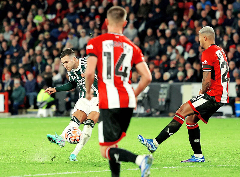 The sluggish visitors went ahead against the run of play in the 28th minute when Scott McTominay controlled the ball on his chest and found the bottom corner, but the lead lasted just six minutes as Oli McBurnie scored from the penalty spot after McTominay handled James McAtee’s cross.
