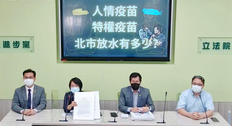 The Democratic Progressive Party legislative caucus questioned whether the city government had distributed vaccines based on privilege or favors to friends, and demanded that Ko verify on what basis the vaccines were distributed to the clinic.