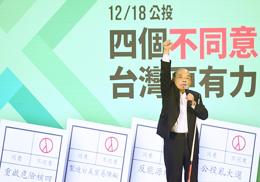 Four questions are to be on the ballot in the Dec. 18 referendums: activating the Fourth Nuclear Power Plant, relocating a natural gas terminal project to protect algal reefs off Taoyuan’s Guanyin District (觀音), banning the importation of pork with traces of ractopamine, and holding referendums alongside elections.