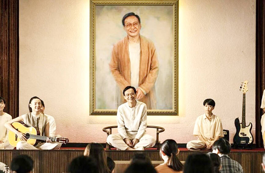 One of the memes is based on a scene where the smiling Revered Master, played by Chen Yi-wen (陳以文), is facing a room full of his religious order’s followers. The two guardians sitting on the left and right were edited to have the faces of President Tsai Ing-wen (蔡英文) and president-elect William Lai (賴清德), the officials said.