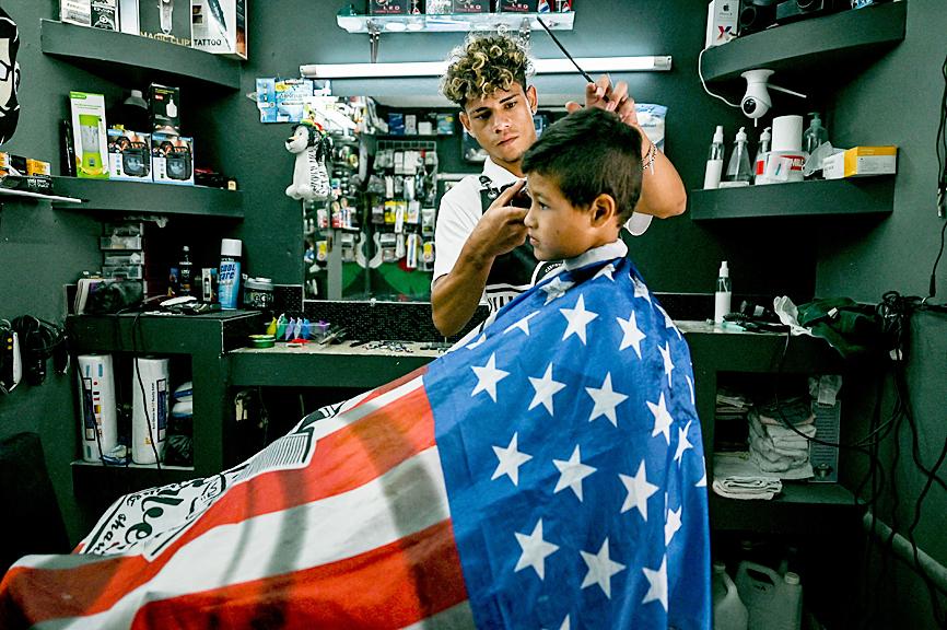 At the salon, the barber capes feature the US stars and stripes — if ever Rodriguez needed more encouragement.