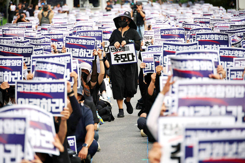 South Korean President Yoon Suk-yeol yesterday ordered officials to listen to the teachers’ demands and work to protect their rights, his office said.