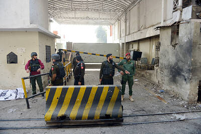 ‘COWARDLY ACT’: The attack came less than two weeks after a suicide bomber struck outside an Islamabad court, detonating his explosives next to a police car and killing 12 Two suicide bombers yesterday attacked the headquarters of a security force in northwestern Pakistan, killing at least three officers and wounding 11 others, police and rescue officials said.The attack took place in Peshawar, the capital of Khyber Pakhtunkhwa Province bordering Afghanistan, when sec