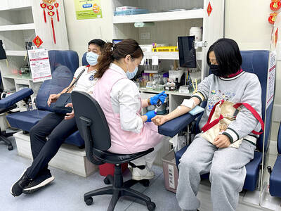 The Taiwan Blood Services Foundation yesterday urged the public to donate blood, saying that the nationwide supply averages just 3.8 days’ worth — below the safe level of seven to 10 days — with O-type blood supplies being particularly low.At the Taichung Blood Center, O-type reserves are sufficient