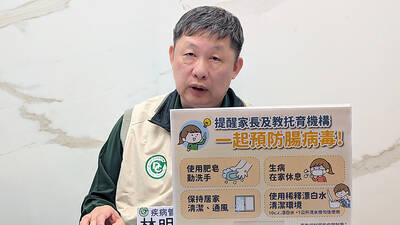 PATTERN: Enterovirus cases usually rise after the Lunar New Year holiday, reaching a peak around the Dragon Boat Festival, before falling in summer, a CDC official said A child died last week from enterovirus infection, the first death this year from the disease, while a rare case of severe enterovirus infection was reported in a man in his 30s, the Centers for Disease Control (CDC) said yesterday.The child, who died in southern Taiwan and was younger than 10, did