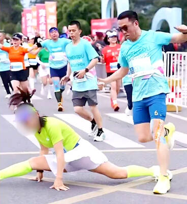 A runner who stopped during a marathon in China to pose doing the splits and another who hoarded energy gels have been banned for two years, the local athletics association said yesterday. The incidents happened during Sunday’s marathon in Sichuan Province’s Chengdu and were widely shared online.Vid